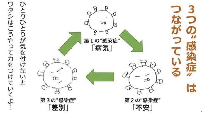 日本赤十字社は、【見えない敵(ウイルス)への不安から、特定の対象を見える敵とみなし嫌悪の対象としてしまう。その結果、偏見や差別をして遠ざけることでつかの間の安心が得られる】としています。